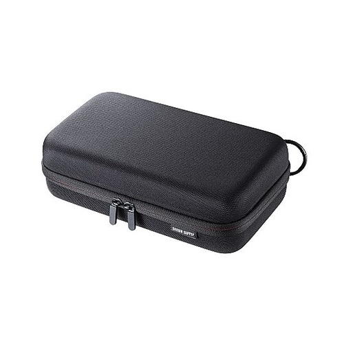 モバイルバッテリーや充電器などの小物を整理収納できます。外部からの衝撃に強いセミハードシェルです。収納物を一目で確認でき、出し入れしやすいフルオープンタイプです。 |
