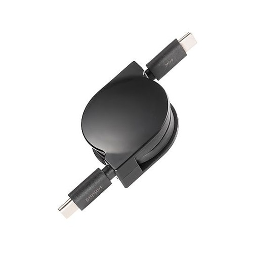 巻き取り式USB2.0 Type−Cケーブルです。筐体部が約40×40mmのコンパクト設計です。重量も約24gと非常に軽く持ち運びに適しています。 |