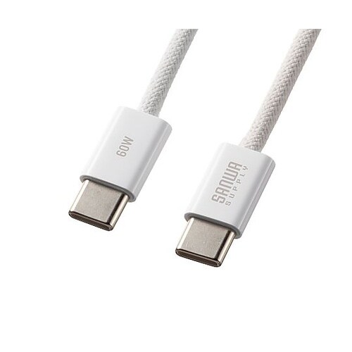 サンワサプライ USB Type−Cシリコンメッシュケーブル(PD60W・1m・ホワイト) KU−CCP60SM10W 1本 A09H-3485