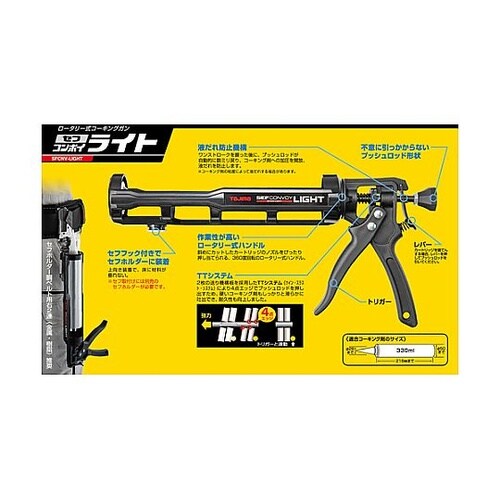 セフフック付で腰周りに装着可能です。ノズルカット面を自在に操るロータリー式ハンドルです。筒、グリップ、トリガーに軽量エンジニアリング・プラスチックを採用しています。 |