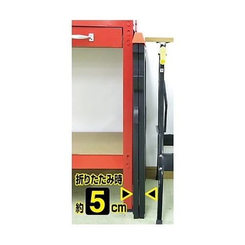 天板には材料がズレにくいゴム製の滑り止めと落下防止ストッパー付です。コード類のかけられる爪付きです。組み立て不要です。コンパクトに収納でき、持ち運びにも便利です。 |