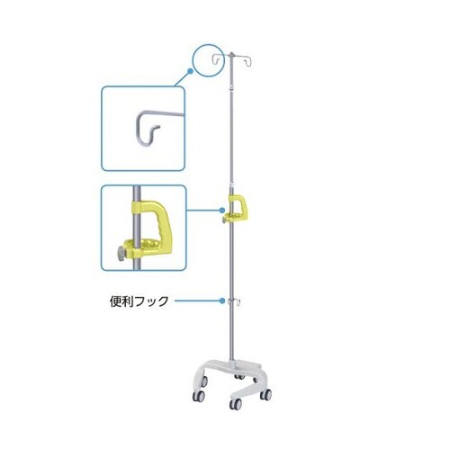 ナカバヤシ 点滴スタンド(便利フック付き) イエロー RTS−U302 YE 1個 A09H-3858