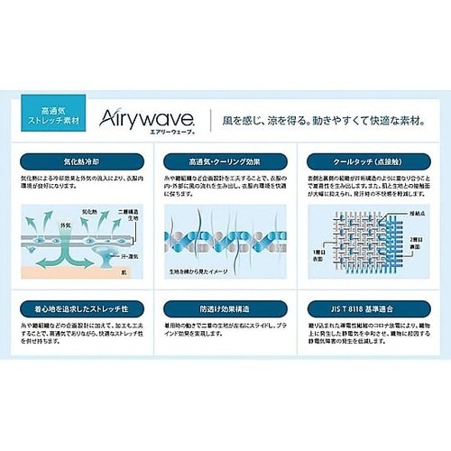 ハイストレッチ涼感ユニフォーム。涼しく動ける新境地のワークウェア。運動性、快適性、デザイン性、すべてを追求したワークウエアを開発。優れた通気性と高ストレッチ軽量素材で、涼しく動きやすい。 |