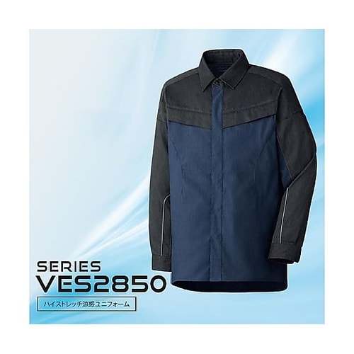 春夏作業服 帯電防止JIS適合 ベルデクセルフレックス シャツ 上 グレー×ネイビー Lサイズ VES2853−UE−L 1着