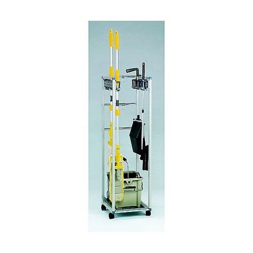 清掃用具は含みません。キャスター付スライド式フック付塩ビ不使用再生素材省スペース収納タイプモップをすっきり収納する専用ハンガー取り外し可能な受皿で、水の処理や掃除が簡単です。 |