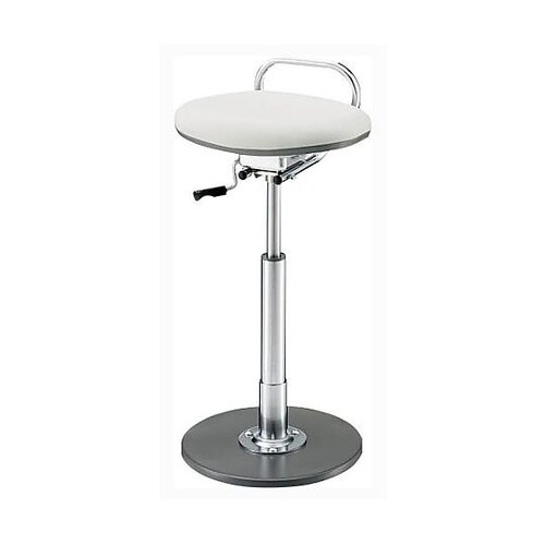 立ち作業をサポートするチェアです。ガス式上下調節機構、座面チルト機構付脚ベース内部は、床と導通させる構造になっています。 |