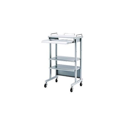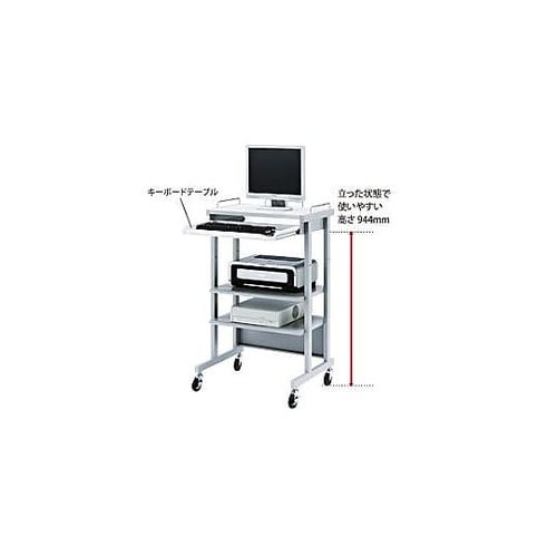 スライド式キーボードテーブルは立った状態で使いやすい944mmです。移動が楽に行えるφ75mmの大型キャスター付。 |
