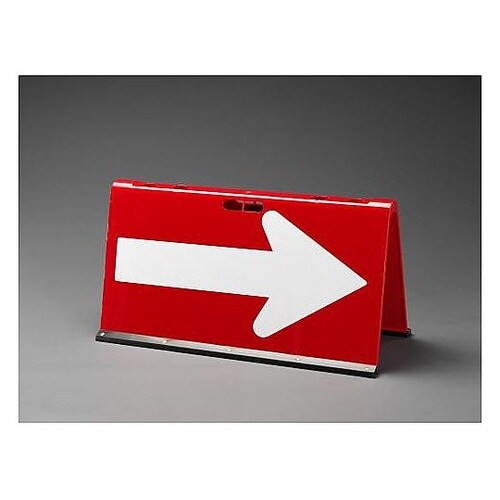 段積みが可能です。上面にφ40mm、φ50mmの孔が左右2個(合計4個)空いており、点滅灯などの取付けが可能です。大型で視認性に優れます。表裏で矢印の方向は同じです。 |