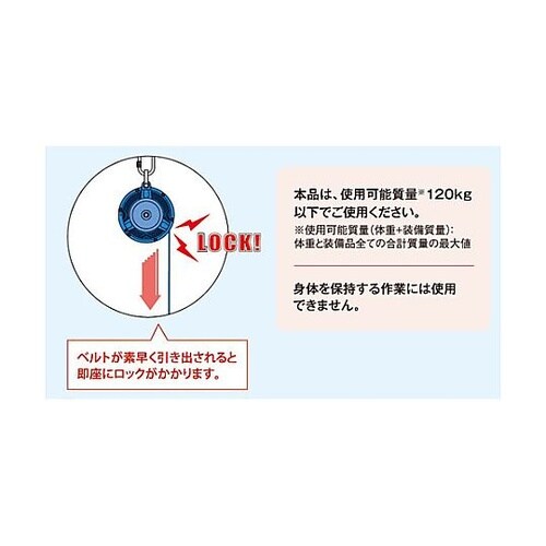 遠心ブレーキ方式のロック機構付高所作業時の安全確保のための墜落防止器具ベルト巻取り機構に減速機構をプラスし、急激な巻取りによる危険とベルトの乱巻きを防止します。 |