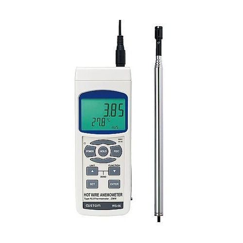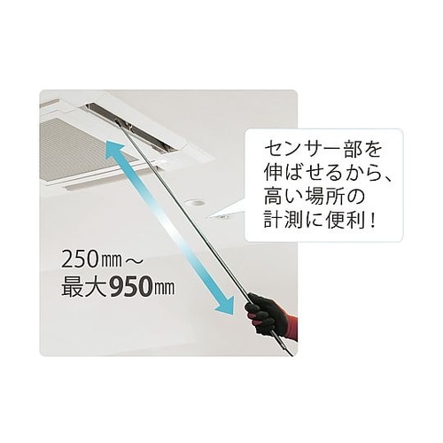 スタンド付風量も測れる熱線式タイプ風速測定と風速センサー部にある温度センサーによる周囲温度測定が可能です。風速センサーは微小風速の測定に便利なホットワイヤ方式。 |