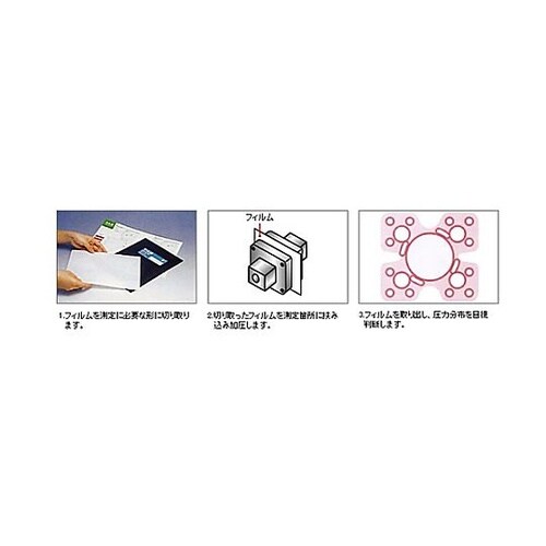 面の応力分布の簡易測定に。フィルムをカットし、はさむだけで接触圧、圧縮圧、あたり具合などの様々な用途に用いられます。圧力の強さに応じて赤発色の濃さが変わります。圧力を測定する測定フィルム。 |