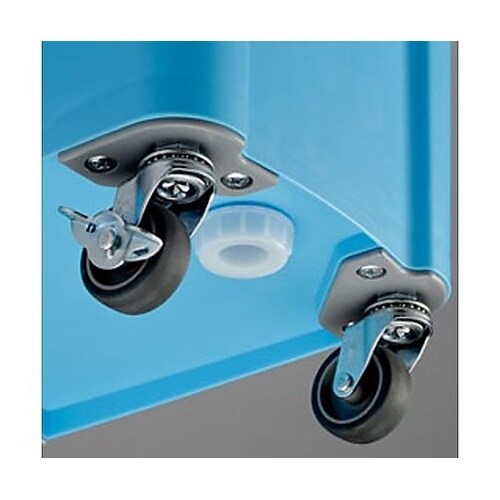 キャスター付★フタをハンドルに掛けて保持できます。容器底面に排水栓付厨房での作業性を考えた業務用ペールです。 |