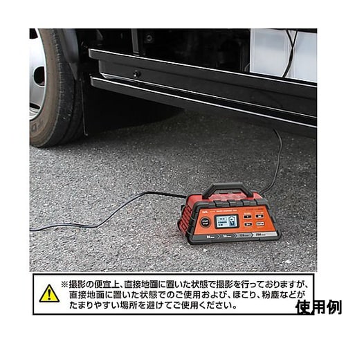大電流(12V/24A、24V/12A)で充電できます。開放型、密閉型、AGM、ディープサイクルバッテリーに対応。軽自動車から農機・建設機械などにも。 |