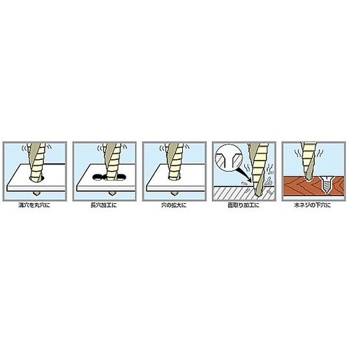 スパイラル溝でスピーディーな穴あけ作業が可能です。 |