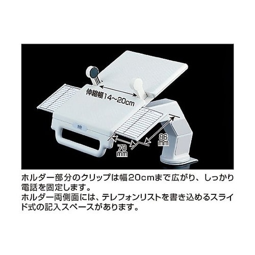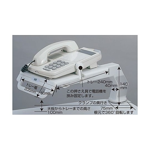 360°回転し、手前に引き寄せられる快適設計のテレフォンアーム(テレホンアーム)。電話を机上より約100ー130mm上に設置できるので、より広いワークスペースが得られます。 |