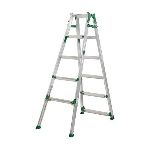 アルミ合金製奥行き60mmのワイドステップ高段差に対応した伸縮脚付のはしご兼用脚立です。 |
