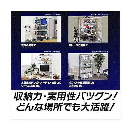 型番:MR−9009 | ※注意※:【お客様組立品】 | ポール径:φ25mm | 材質:棚板・ポール・スチール(クロムメッキ)、固定部品・ABS樹脂…