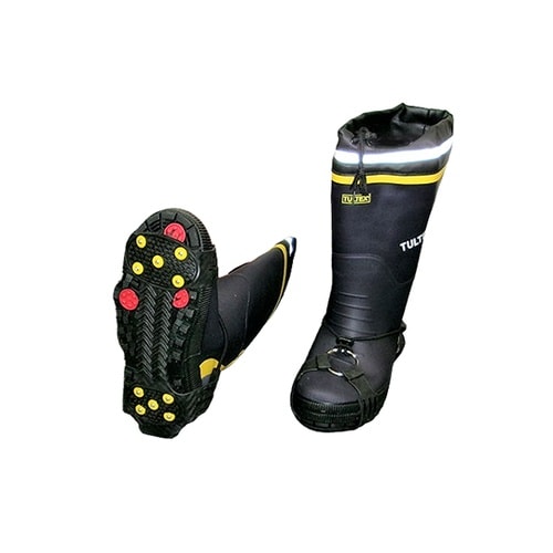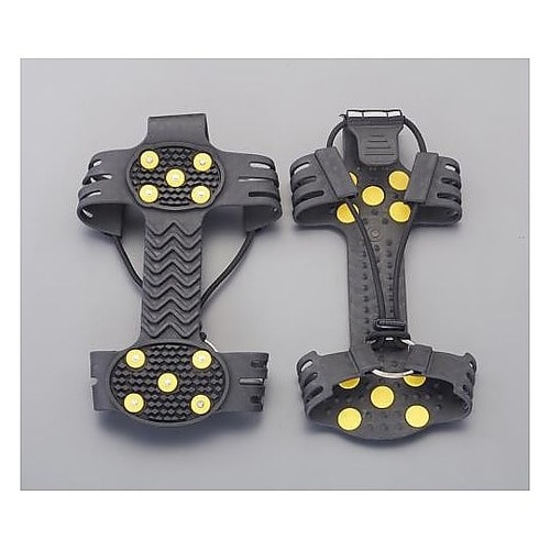靴の形状によっては装着できない場合もあります。雪道や凍結道路での転倒防止に草刈・レジャーの斜面・悪路歩行に斜面での歩行・作業などに10個のスパイクが付いているので滑りにくい。 |