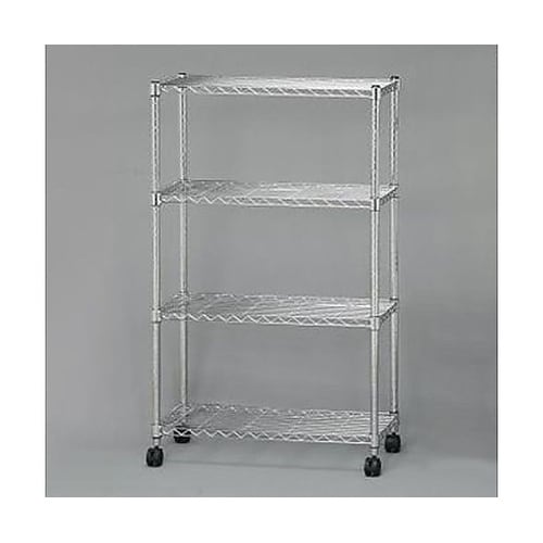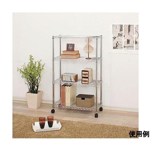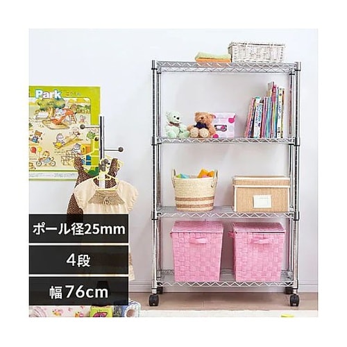 キャスター×4個付(内2個はストッパー付)クギやネジを使わずに簡単に組み立てられます。棚板の高さは自由に変更可能です。ポール直径25mmの軽量タイプのメタルシェルフです。 |