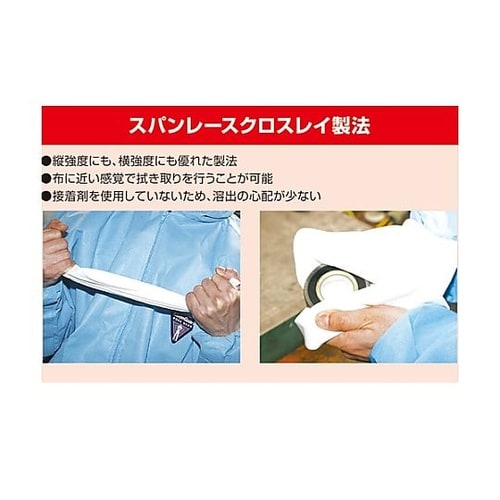 たて強度にも、よこ強度にも優れたスパンレースクロスレイ製法で、布に近い感覚で拭き取りが可能になり、接着剤を使用していないため、溶出の心配が少ないです。 |