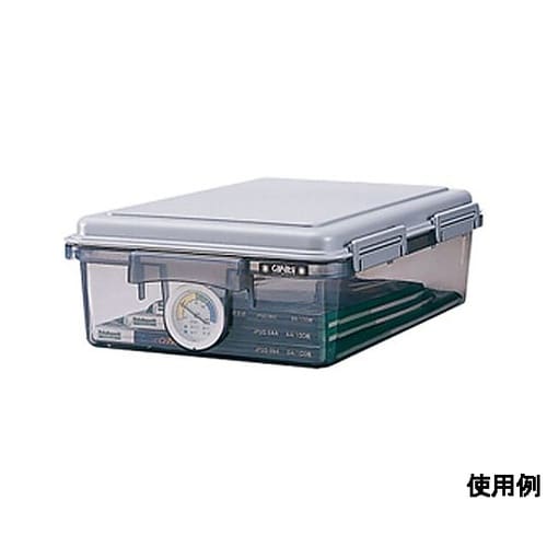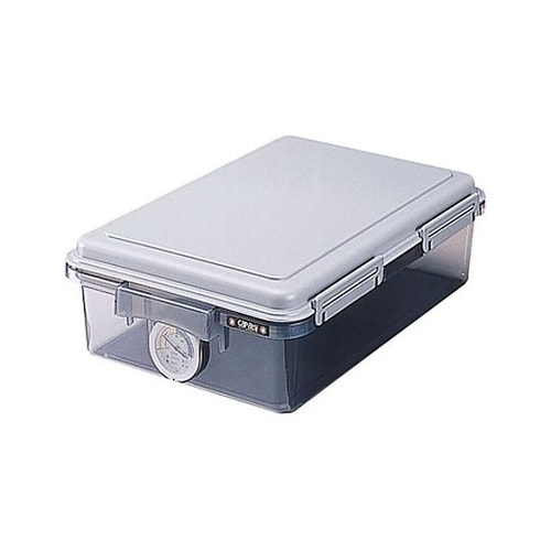乾燥剤、湿度計付シリコンゴムでしっかり密閉できます。同じ品番同士及び、−72と−73は積み重ねて収納できます。2段重ねると、−73と同じ高さになります。湿度計付で保存状態が一目で分かります。 |