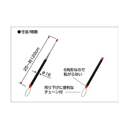 回り止め機能(六角形ストッパー)付きで置いても転がりません。チェーン付きで吊り下げができ便利です。先端は見やすい蛍光色。 |