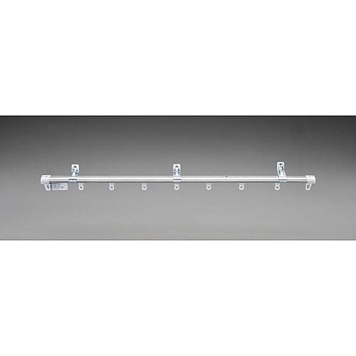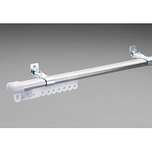シングルタイプ一重吊りカーテン用ブラケットを使用しての正面取付と天井への直取付の2通りの取付けができます。天井へ直付の場合の伸縮範囲は、2.6ー3.0mとなります。 |