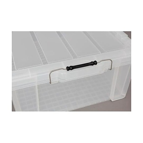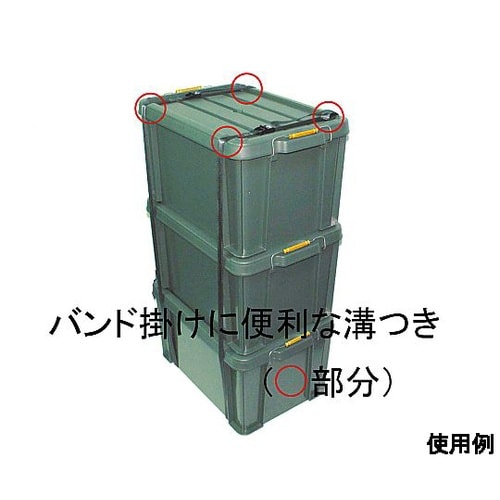 積み重ね可能金属バックル仕様のフタ付コンテナです。バックルの成形部分に凸面が付いているため指に引っかかりやすく、バックルをフタから取り外しやすくなっています。 |