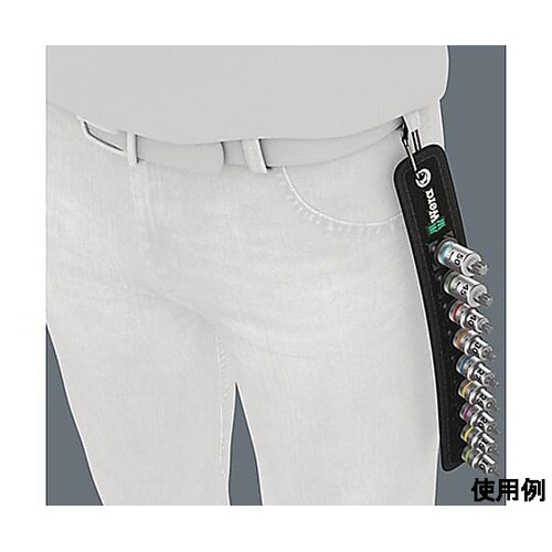 先端がボルト・ナット類をしっかりホールドして脱落を防ぐ形状です。ツイストロック機構のベルト式ホルダー付色の違いによってサイズの選別が容易です。 |