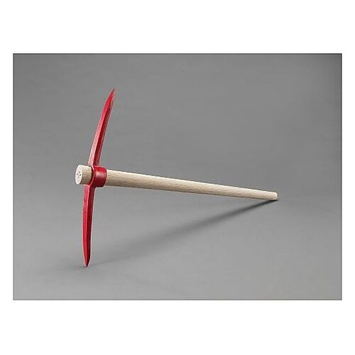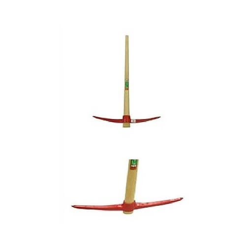 ヘッド部は無溶接一体加工のワンピースタイプです。ピック先端部は炭素鋼S45Cに相当した強度で、熱処理(強度が上がる、磨耗に強くなる処理)を行っています。掘り起こしや粉砕作業に最適。 |