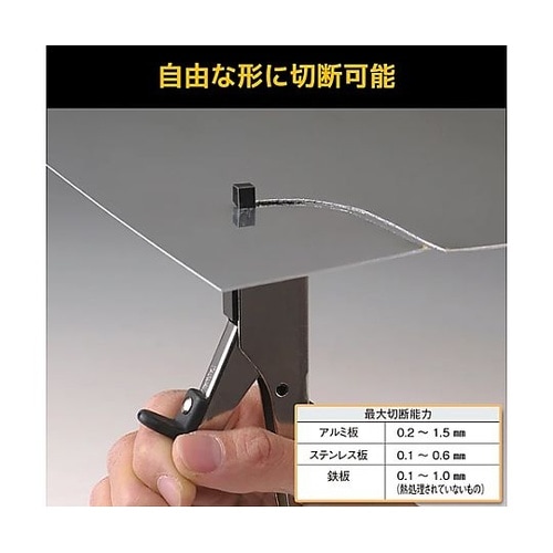 金属板を自在に切り抜き、切断できる金属切断工具(ハンドニブラー)。切り口の変形が少なく、綺麗に切断できます。直線や曲線、角穴、丸穴の加工が簡単にできます。 |