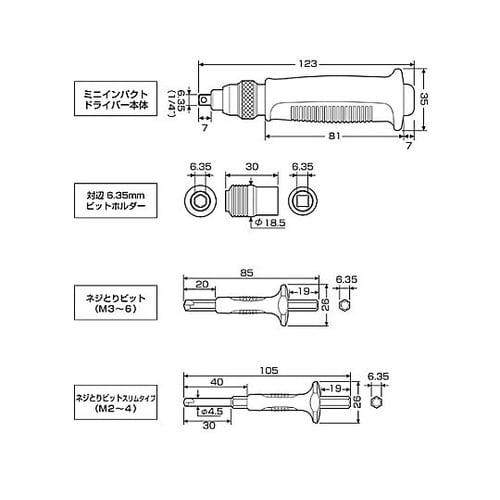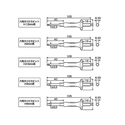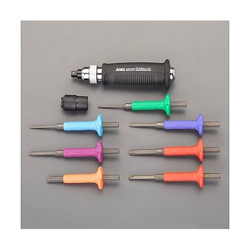 なめたねじ、六角穴付きボルト、止めねじを叩いて取り外します。鋭い刃先がなめたねじに喰い込みます。 |