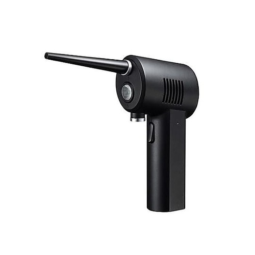 通常のエアダスターに比べ、繰り返しの購入がなく、空き缶の処理、ガスの匂い、火気による危険がありません。本体はどの向きでも使用可能で、逆さにも対応しています。 |