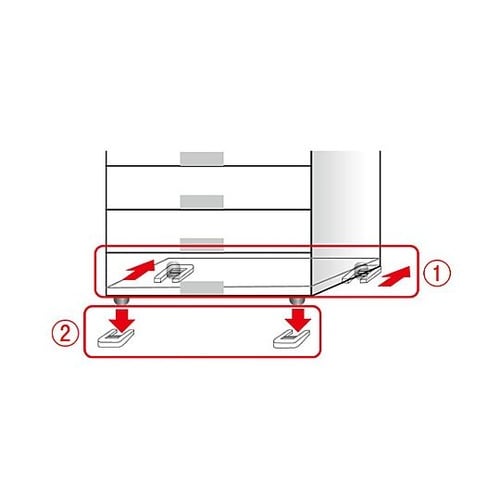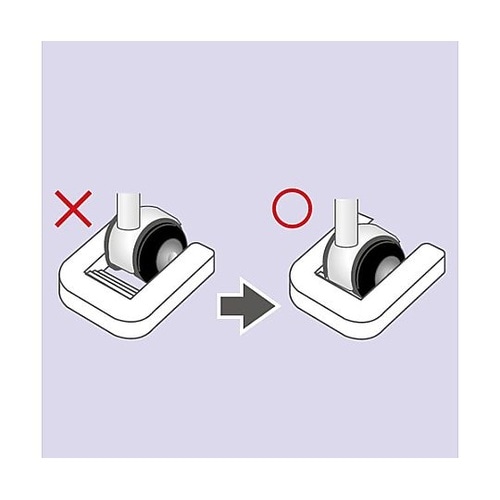 コピー・ファックス機、テレビ台、ラック等のキャスターのストッパーに。前後4ヵ所のキャスターすべてに設置する事で、しっかりと固定し走り出しを防ぎます。 |