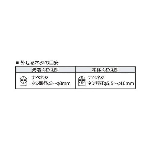 潰れたネジ、錆びたネジを先端のタテ溝で掴んで回せます。 先端で縦に掴めるため、狭い場所でも作業できます。※タッピングネジ、ドリリングネジ、コーススレッドなどの硬度が高いネジには使用しないでください。 |