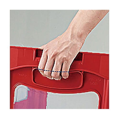 【A】手の形にそった持ち手で持ち運びやすくなっています。【B】底面以外どこからでも内容物が確認できます。【C】窓を囲むフレーム構造で非常に丈夫です。側面から中身が確認できます。 |