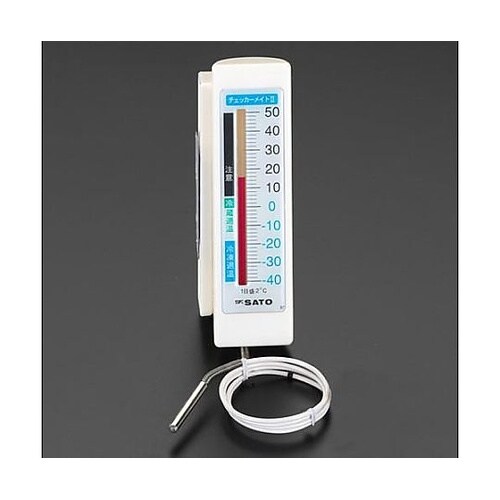 マグネット付ホルダー冷蔵庫の左右どちらでも取り付け使用できます。トレーサビリティ校正・JCSS校正/非対応ドアを開けずに冷蔵庫内の温度を確認できます。 |
