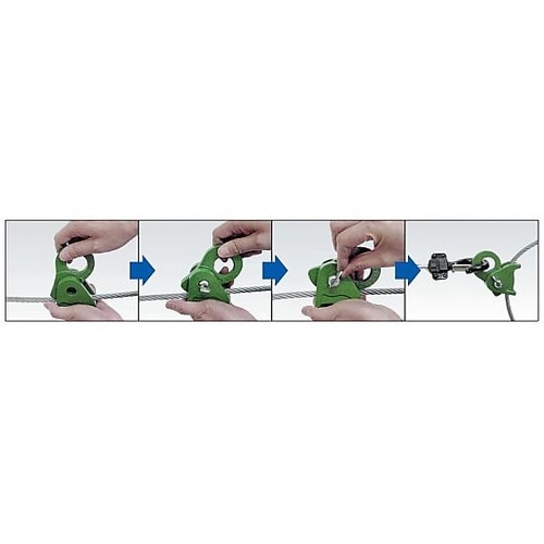 レバーブロック、プーラー、ウィンチ等の作業に引っ張る力でワイヤーが締め付けられ、滑らずに作業できます。小型・軽量で操作はどなたでも簡単にできます。物を吊ることはできません。 |