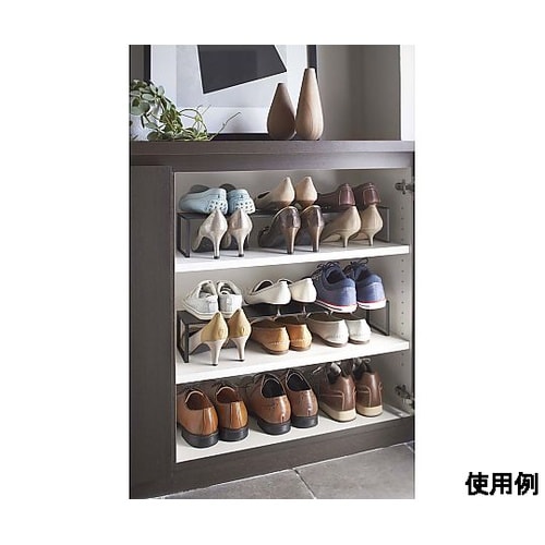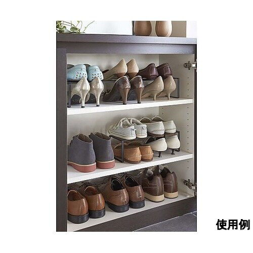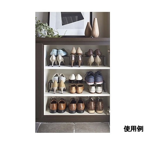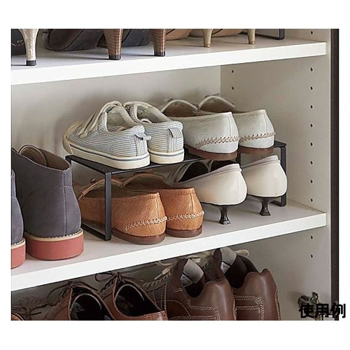 下駄箱の横幅に合わせて調整できる伸縮タイプです。1足分のスペースに2足収納して、下駄箱の収納力をアップ天板がスライドし左右に伸ばせるため、ご家庭の下駄箱サイズに合わせて調節できます。 |