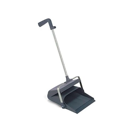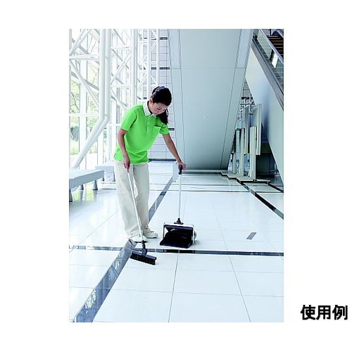 超軽量のちり取りで疲れにくく、使いやすい。ハンドルを後ろに倒すとロックがかかりフタは固定され、前に倒すとロックが解除されます。 |