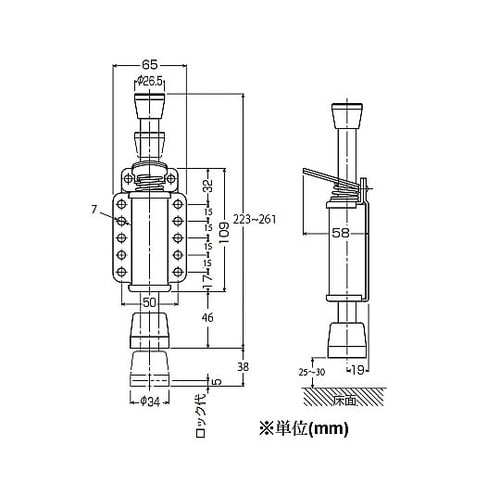 筐体側面に取り付けられるフロアーロックです。搬送機器・医療機器および事務機器の移動防止や、ドア・門扉用ストッパーとして使用できます。 |