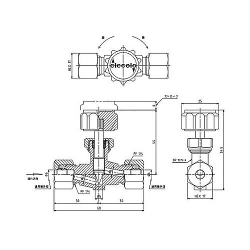 銅管用リング型のストレートタイプ(両口)一次側、二次側共に銅管などをリングスリーブで簡単に取り付けができるタイプの、小型ニードルバルブです。 |