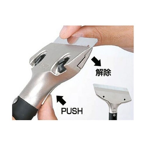 替刃式握りやすいエラストマー樹脂グリップ刃を強力に固定するダブルねじを採用グリップエンドをハンマーで叩いて使用できます。刃の交換時脱落を防ぐ、セーフティバネが内蔵されています。 |