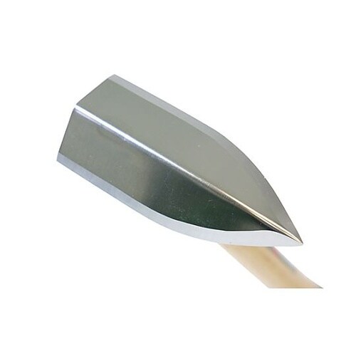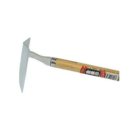 両面に刃をつけているので使いやすく、斜面の除草作業にも便利です。刃先はステンレス刃物鋼を使用し、サビにくく手入れが容易です。熱処理を施しているため耐摩耗性に優れ、切れ味に優れています。 |