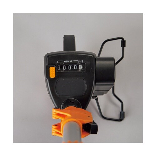 手元でブレーキ、カウンターリセット操作が出来ます。軽量で直線でも曲線でも簡単に操作できます。チェーンタイプの車輪伝動方式なので耐久性に優れています。タイヤはTPR素材で耐摩耗性に優れています。 |