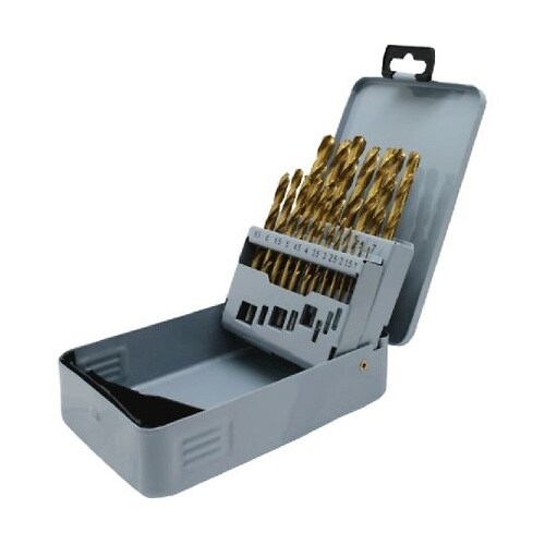 ハイス鋼を母材にチタンコートを施し強度を向上。ドリル先端のエッジに切れ刃を付け、切削効率に優れるシンニング加工仕様。保管や携帯に便利なメタルケース入り。 |