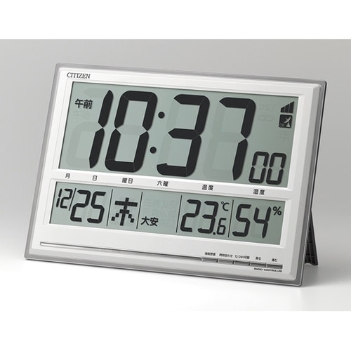 大型デジタル電波時計です。数字サイズ(縦)113.5mmの見やすい大型表示です。掛置兼用です。時間・日時・曜日・六曜カレンダー・温度・湿度を一目で確認出来る大型液晶表示です。 |