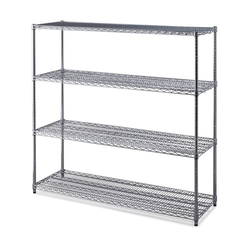棚板1枚あたり300kgのメタルラックR史上、最高耐荷重です。縦方向の線材を増やし、面の強度をアップしています。縦方向の線材を上部に組むことで抵抗を低減し、棚からものを取り出しやすくなっています。