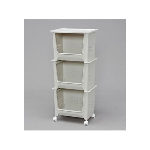 場所を選ばず段数も自在に組合せ可能なバスケットです。バスケットは3個セットで、フタが1枚付いています。フタが開閉するので、ものの出し入れが簡単です。キャスターが付いているので、ラクに移動が出来ます。 |
