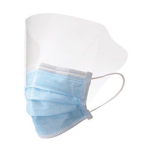 湿性生体物質から目を守るアイシールドと鼻・口を守るサージカルマスクが一体になった製品です。これ一枚で目・鼻・口の粘膜を感染源から守ります。 |